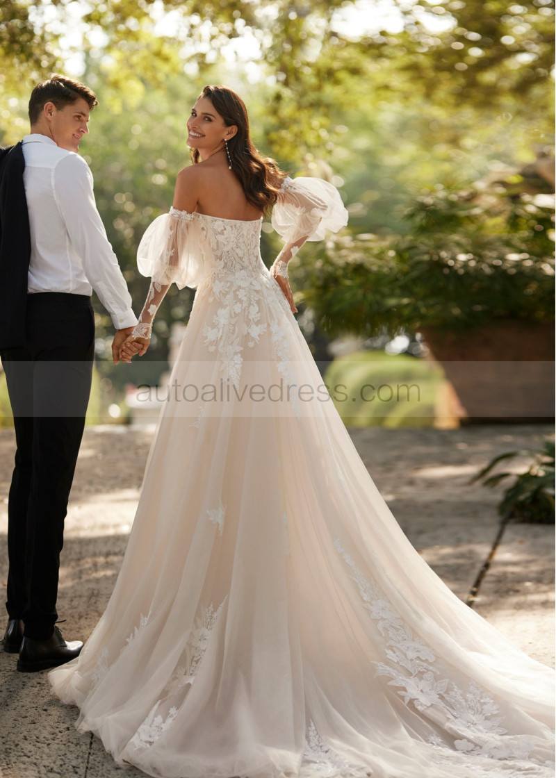Sweetheart Neck Beaded Lace Tulle Wedding Dress With Detachable Sleeves