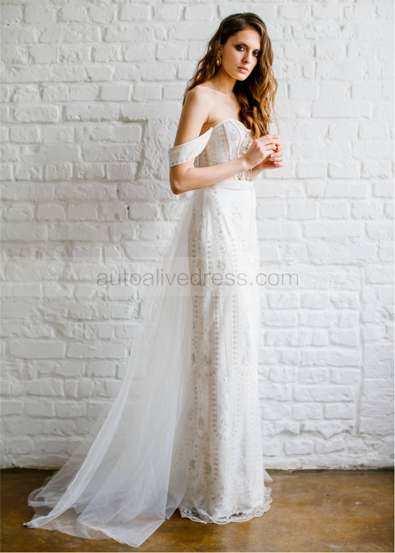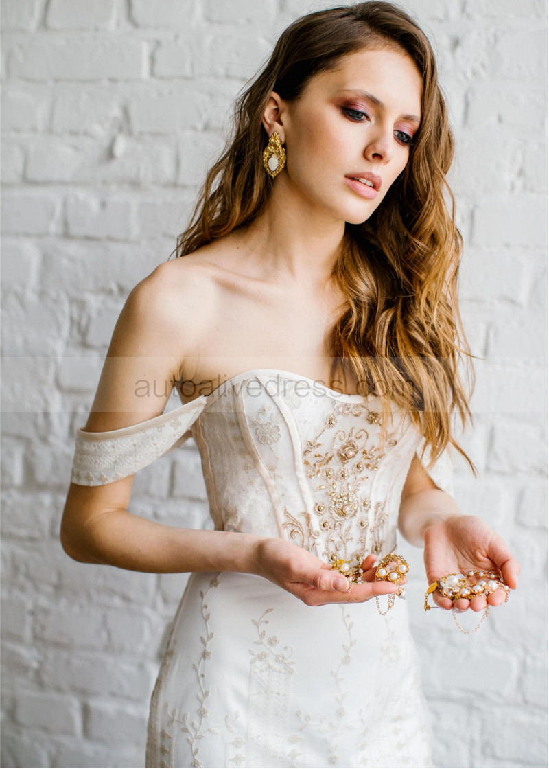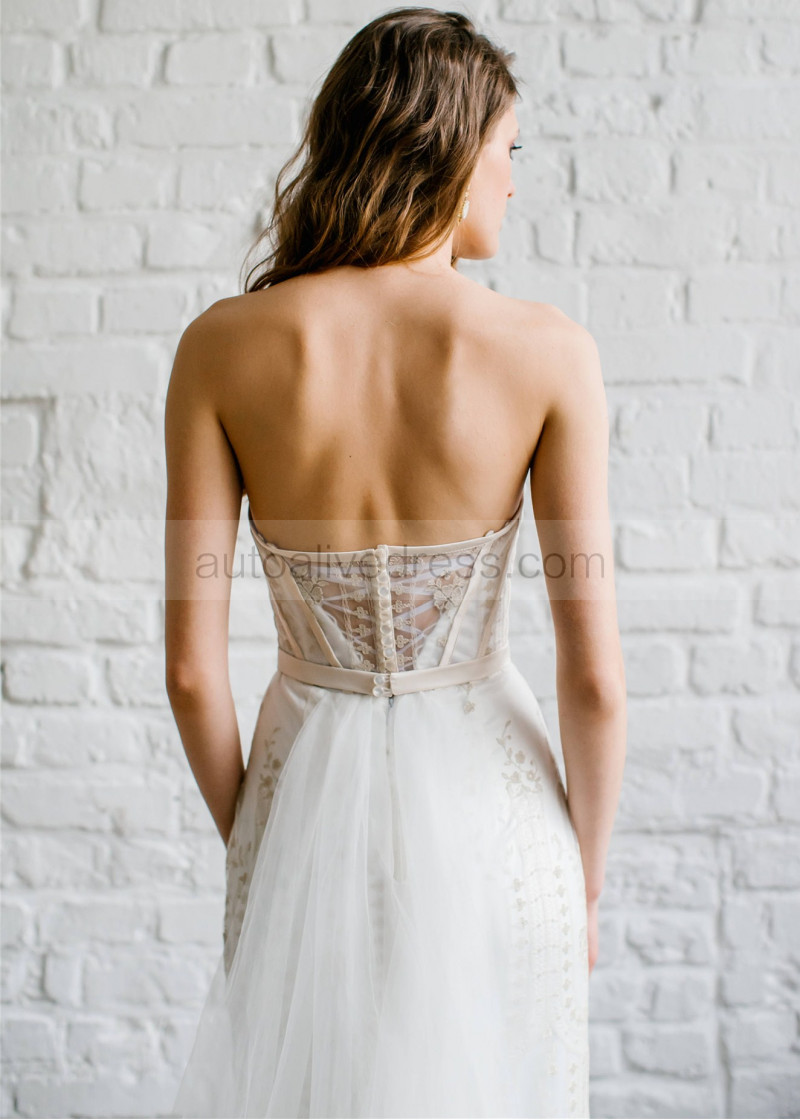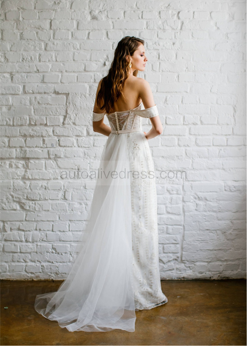 Sweetheart Neck Gold Lace Tulle Wedding Dress
