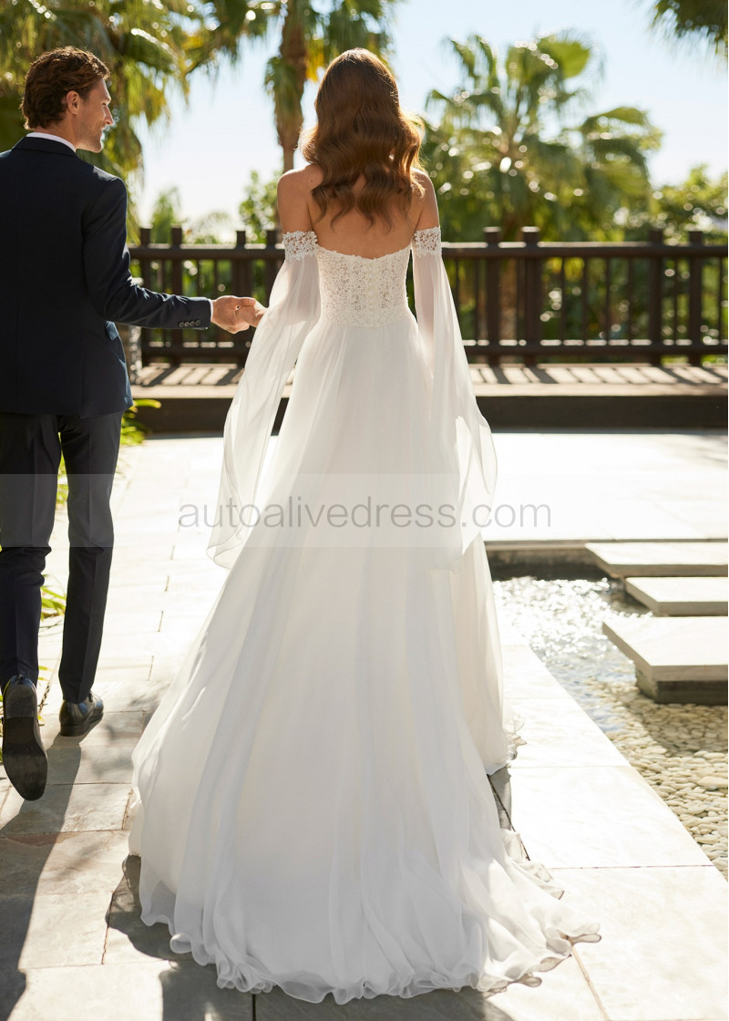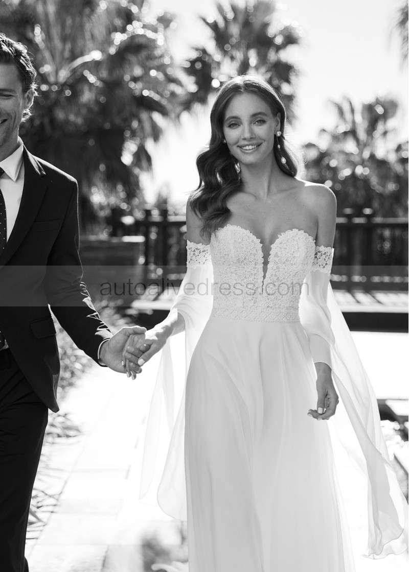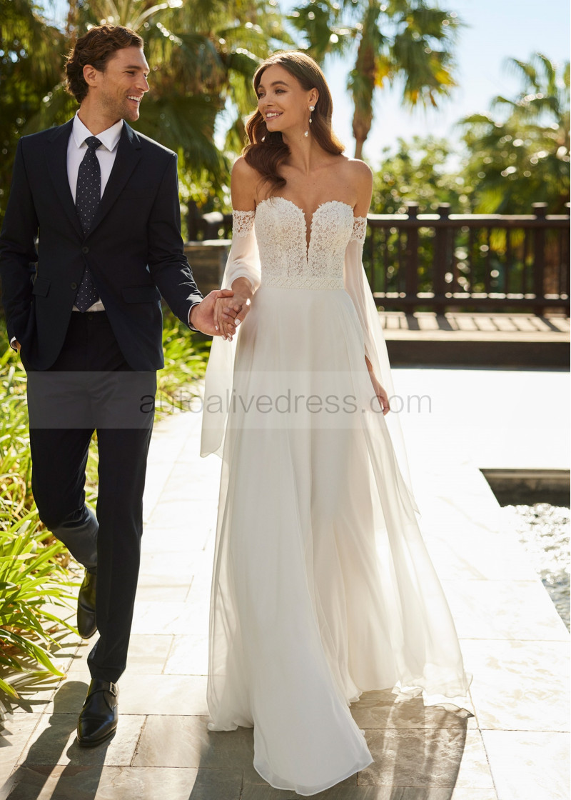 Sweetheart Neck Ivory Lace Chiffon Wedding Dress With Detachable Sleeves