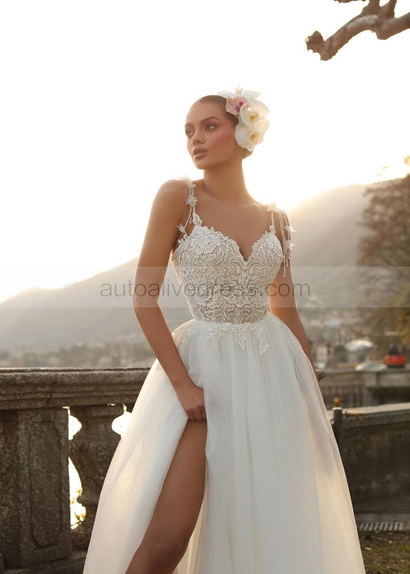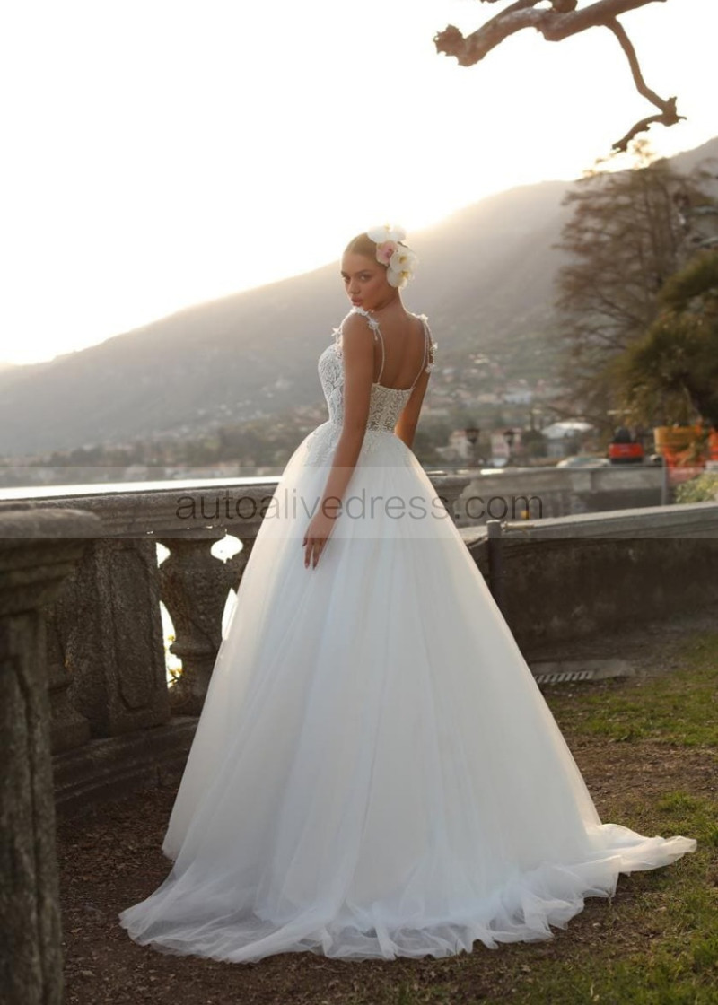 Sweetheart Neck Ivory Lace Tulle Chic Wedding Dress