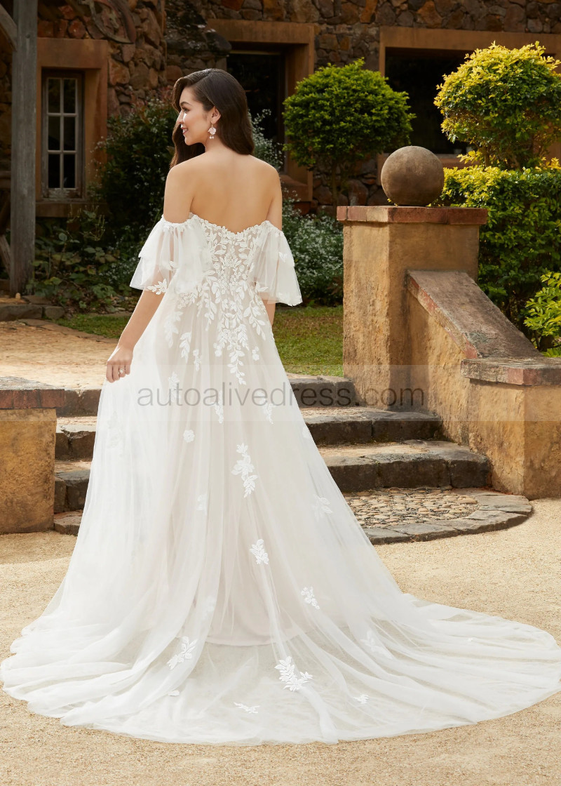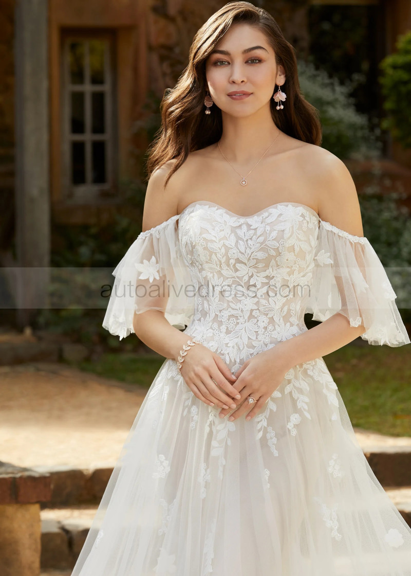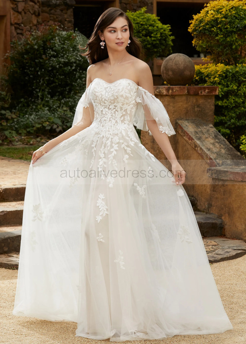 Sweetheart Neck Ivory Lace Tulle Wedding Dress With Detachable Straps