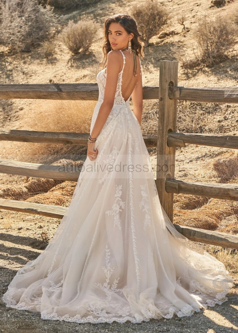 Thin Straps Ivory Sequined Lace Tulle Wedding Dress