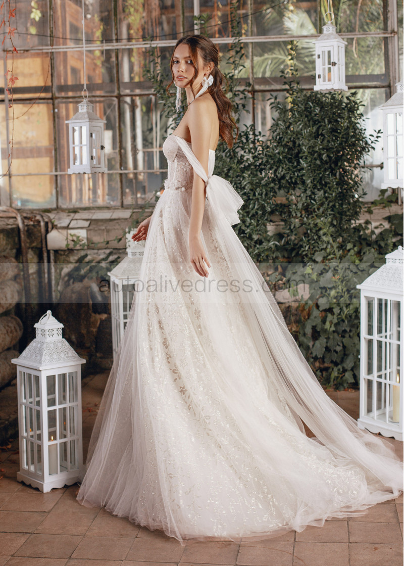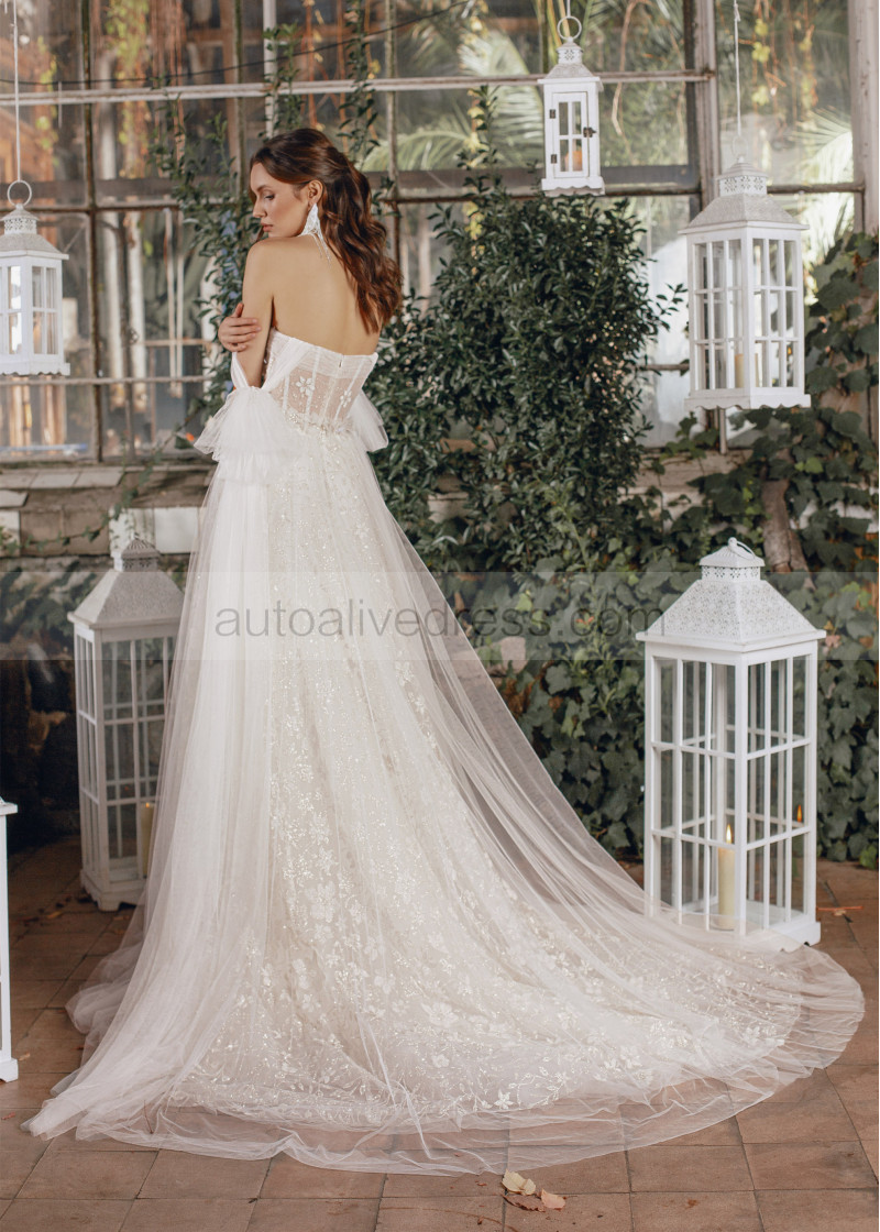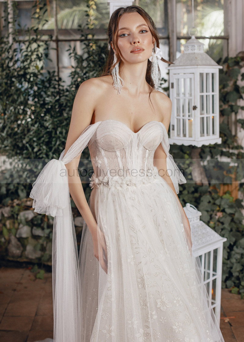 Tie Straps Ivory Lace Tulle Wedding Dress