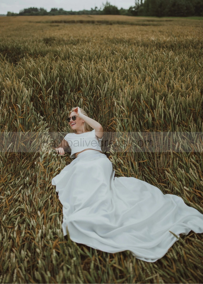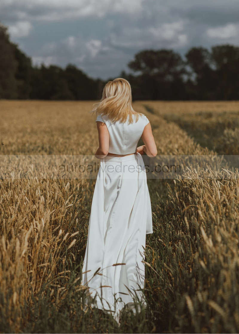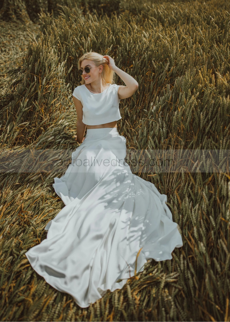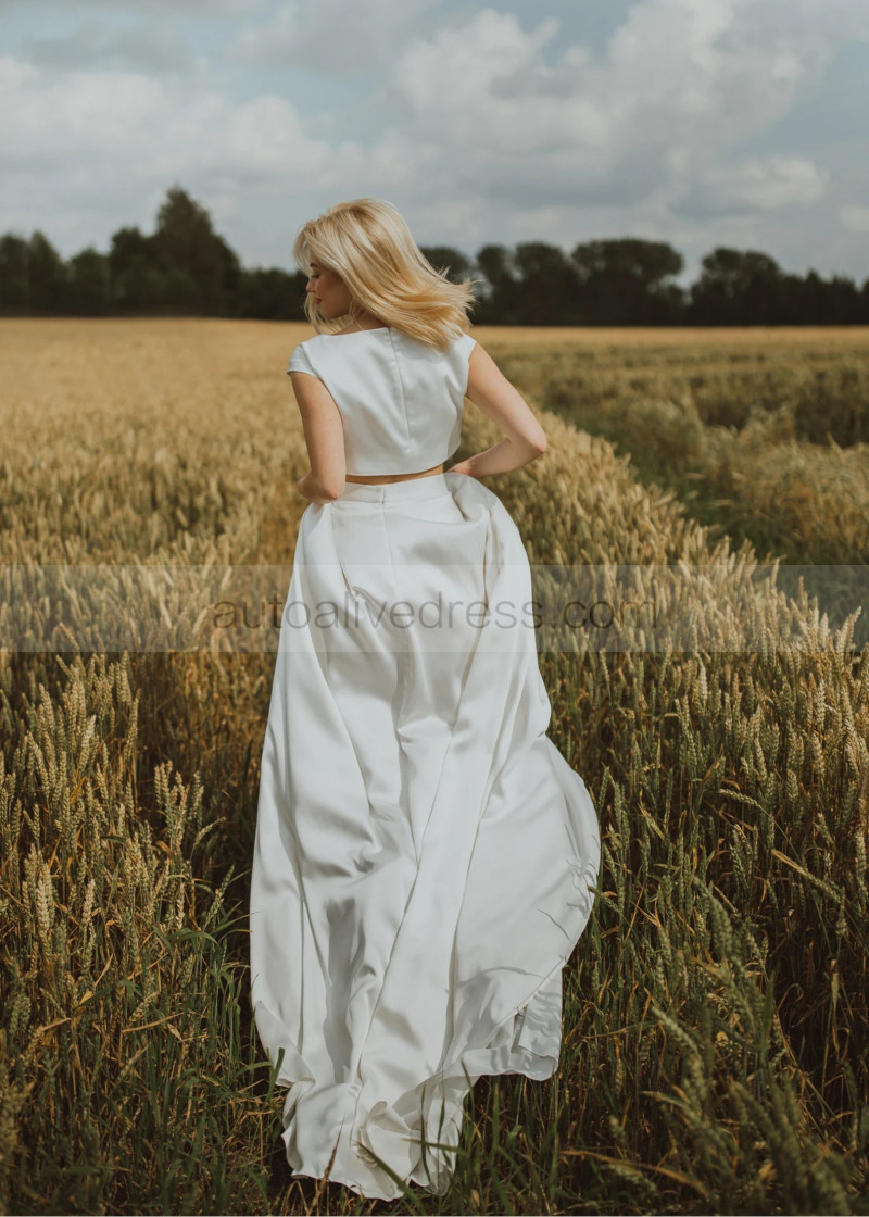 Two Piece Ivory Satin Minimalist Wedding Dress