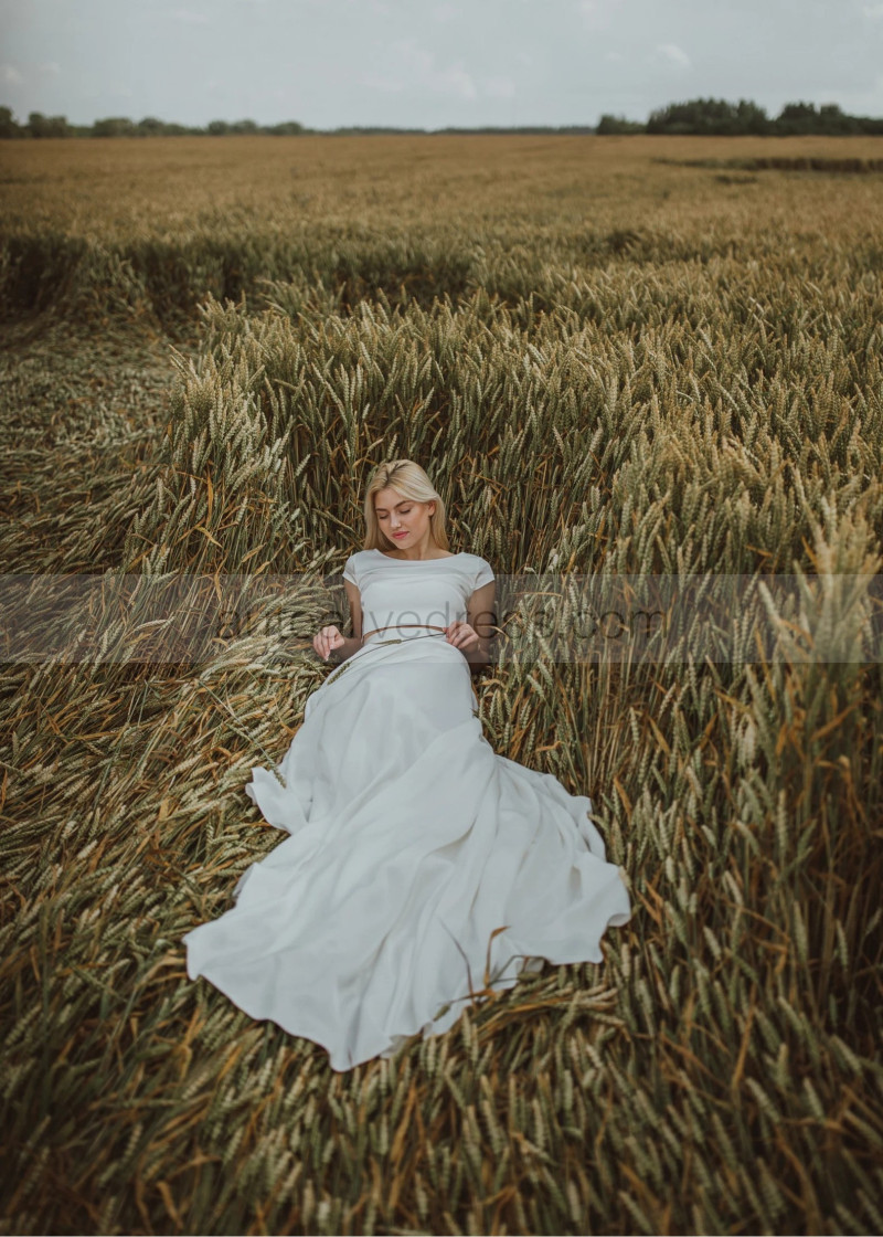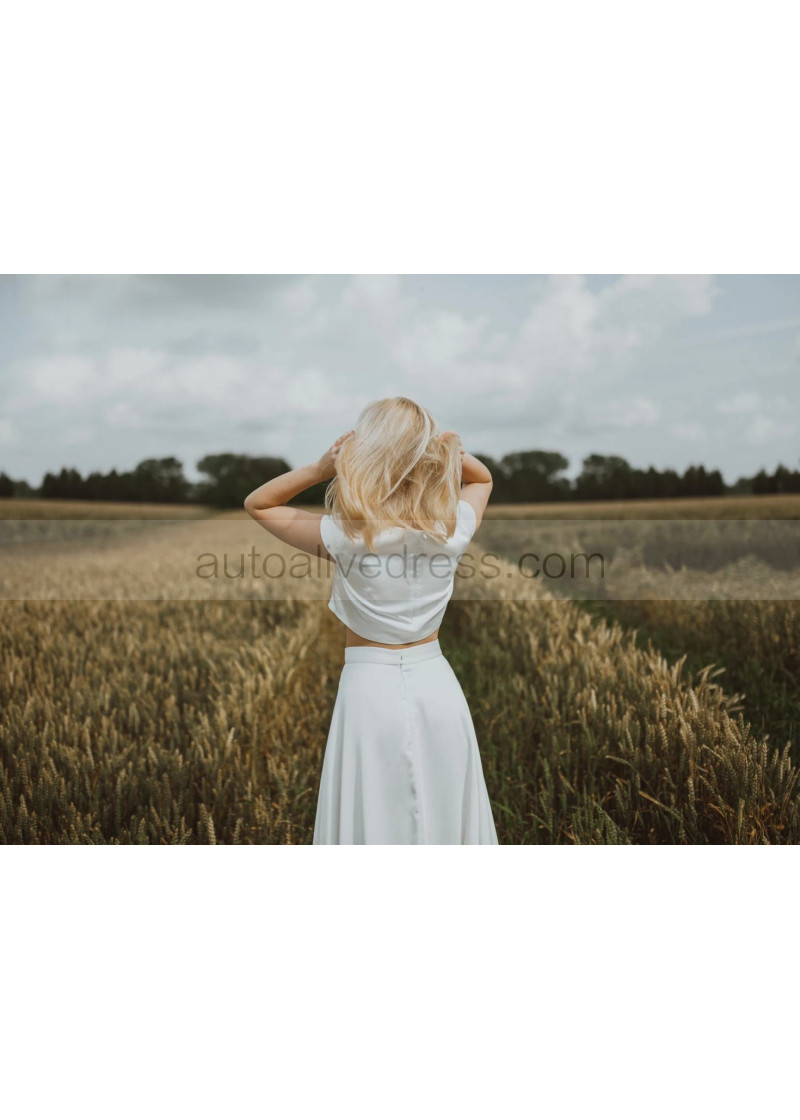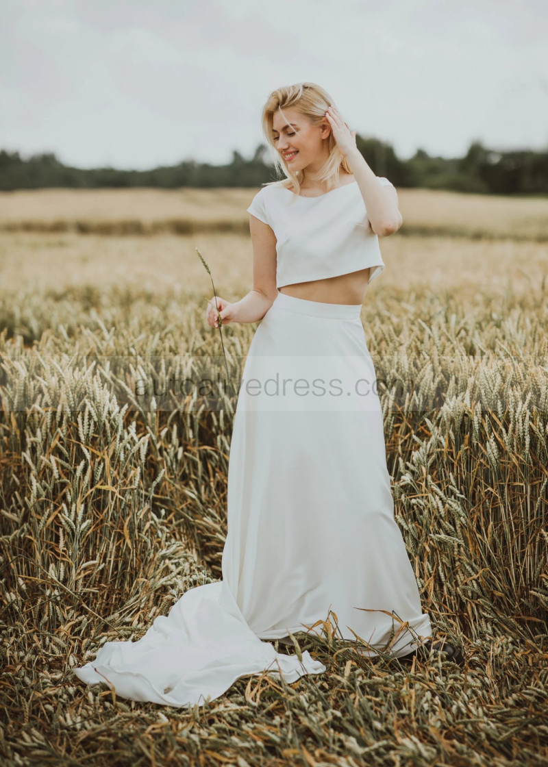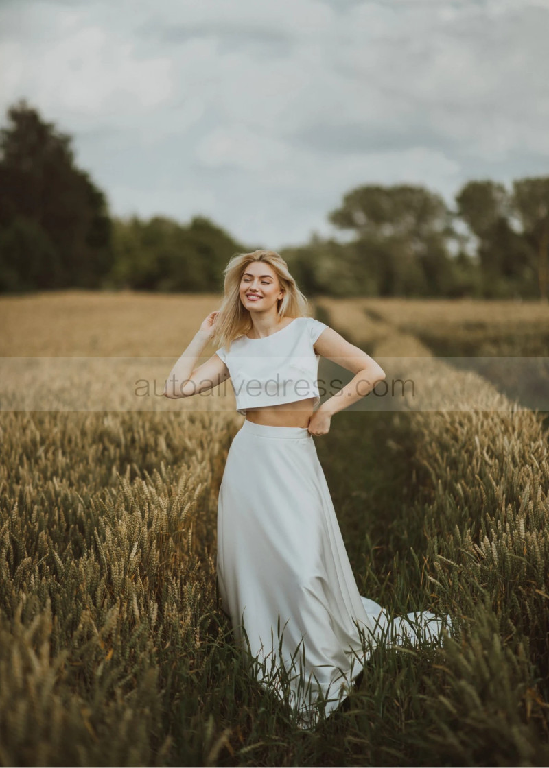 Two Piece Ivory Satin Minimalist Wedding Dress