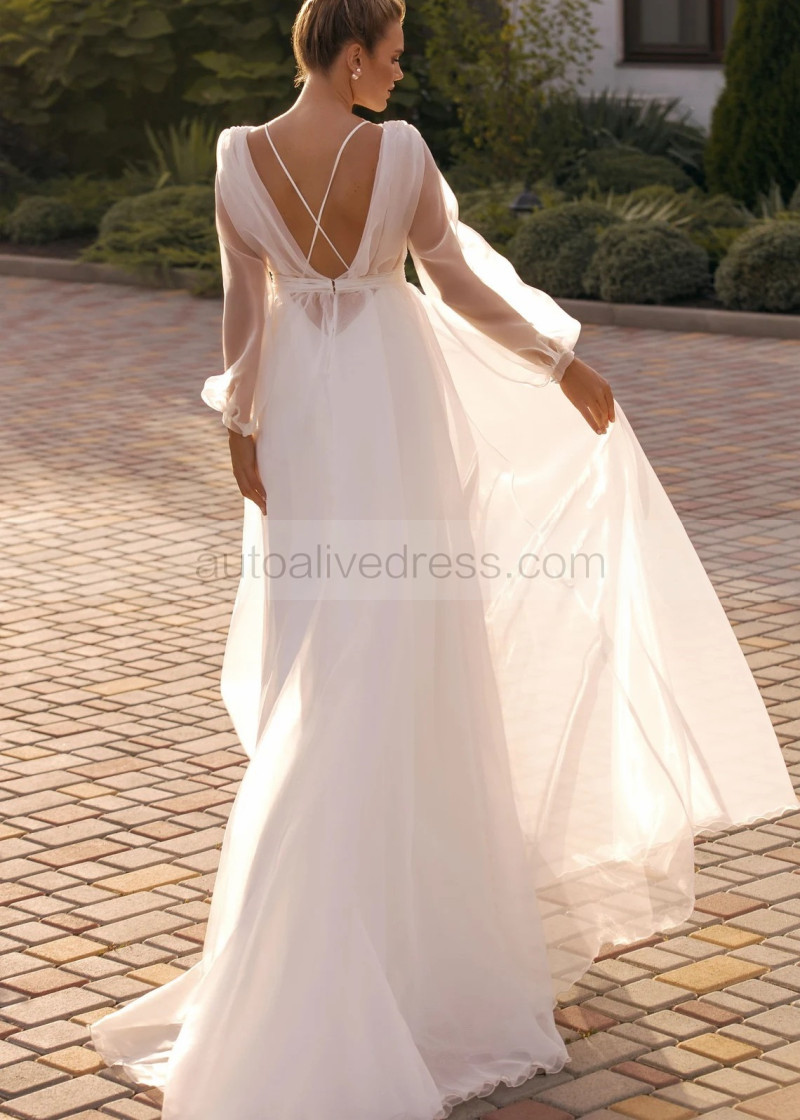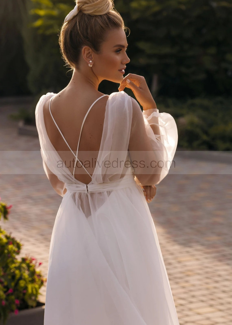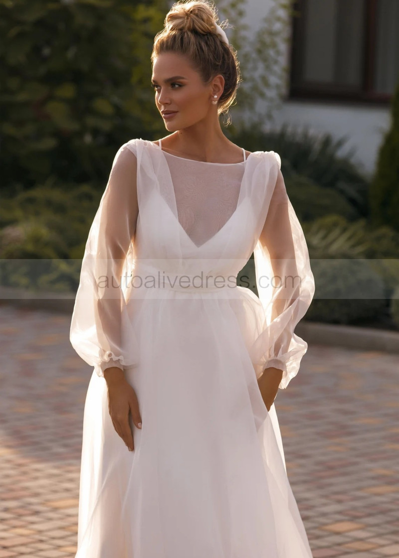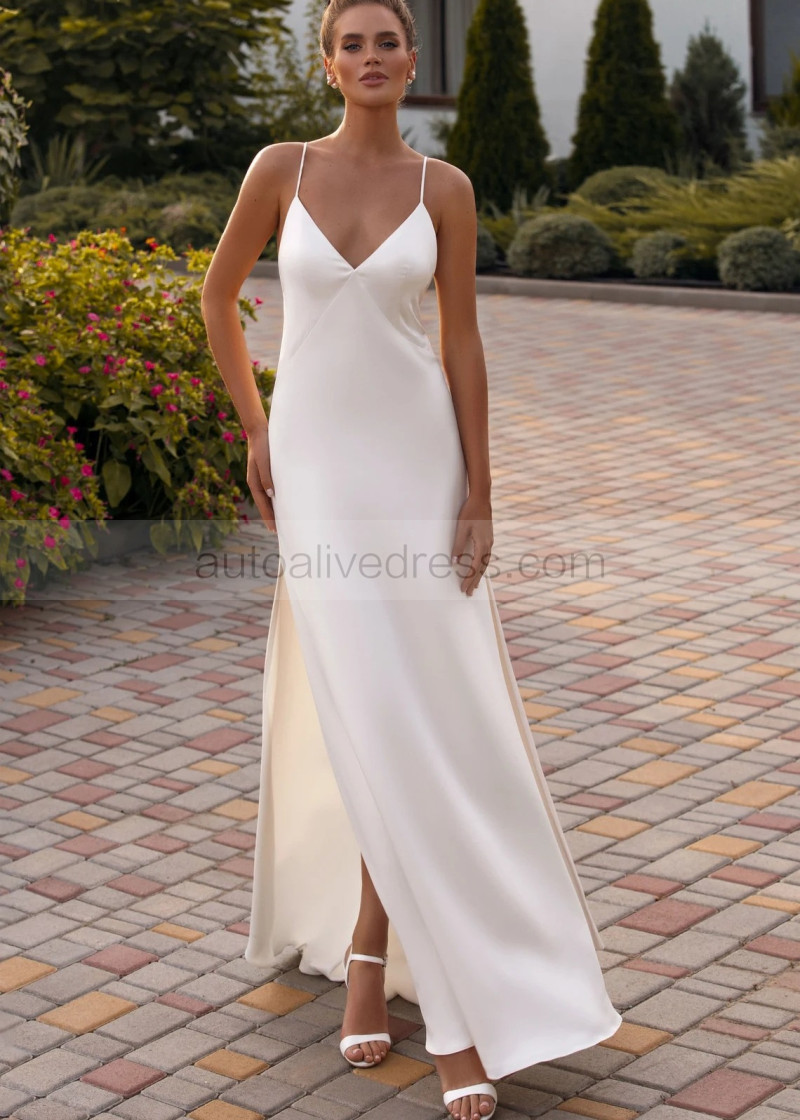 Two Pieces Ivory Satin Organza Civil Wedding Dress