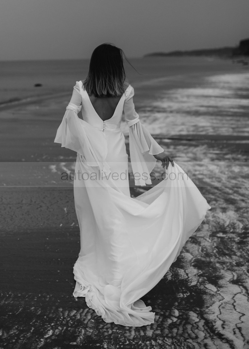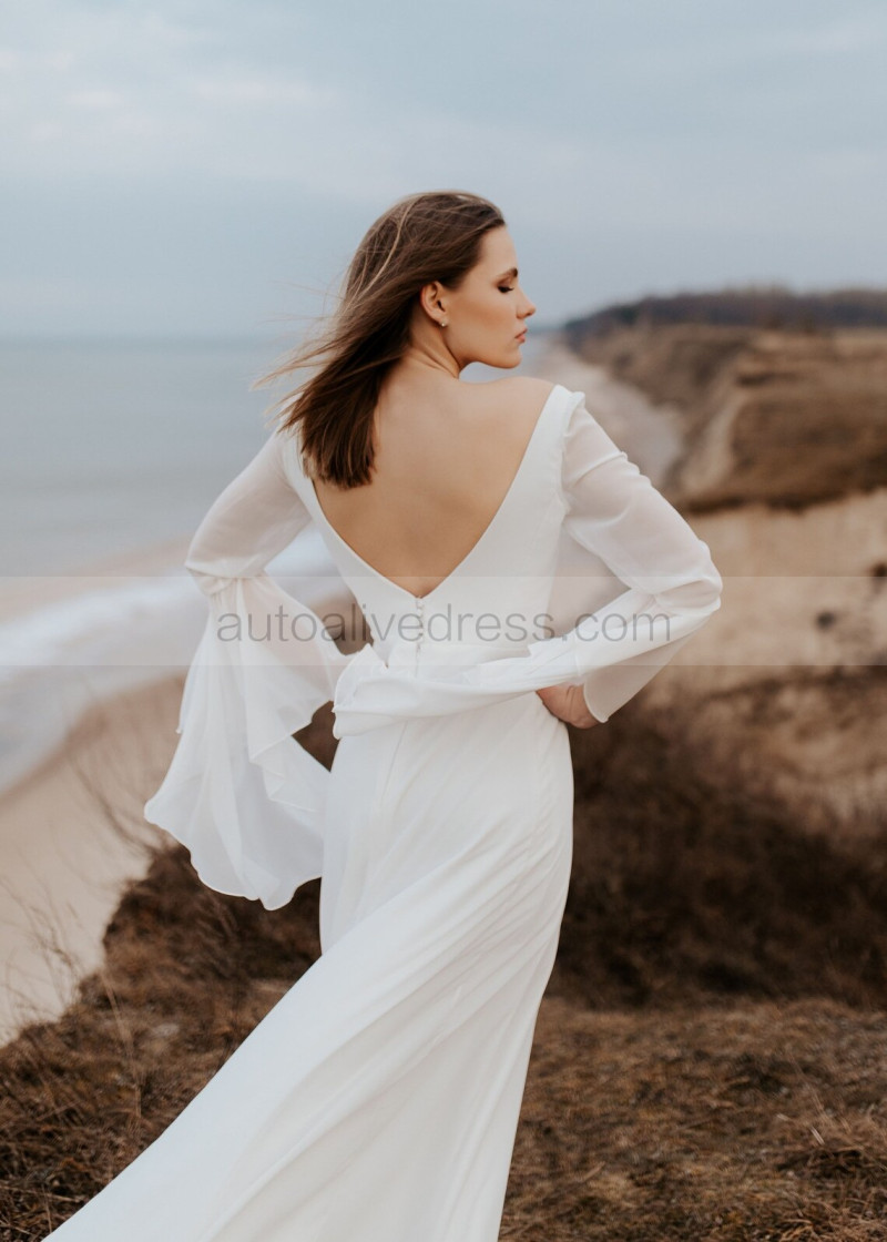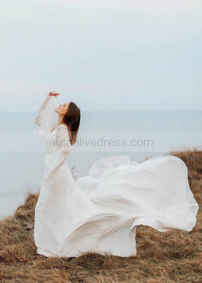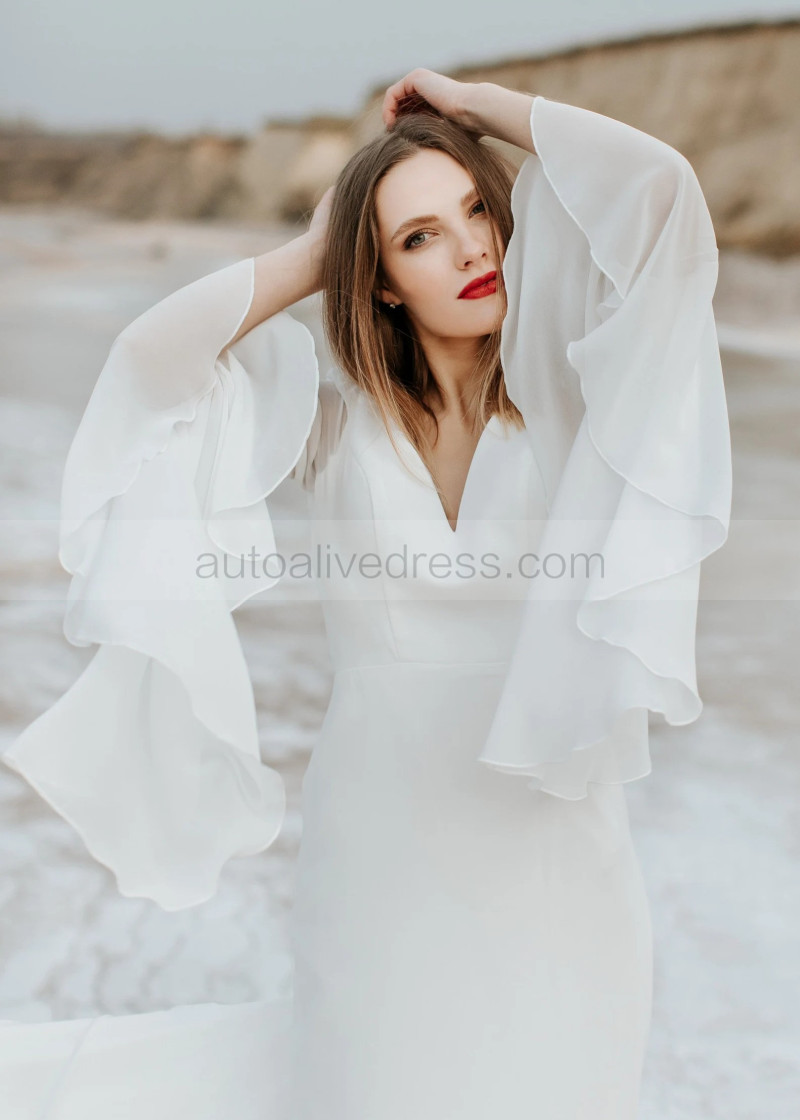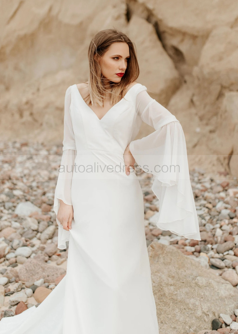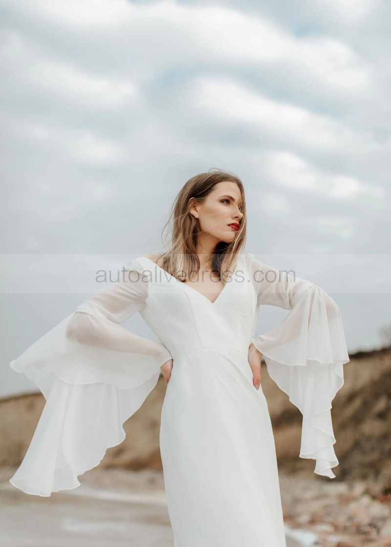 V Neck Ivory Chiffon Elegant Summer Wedding Dress