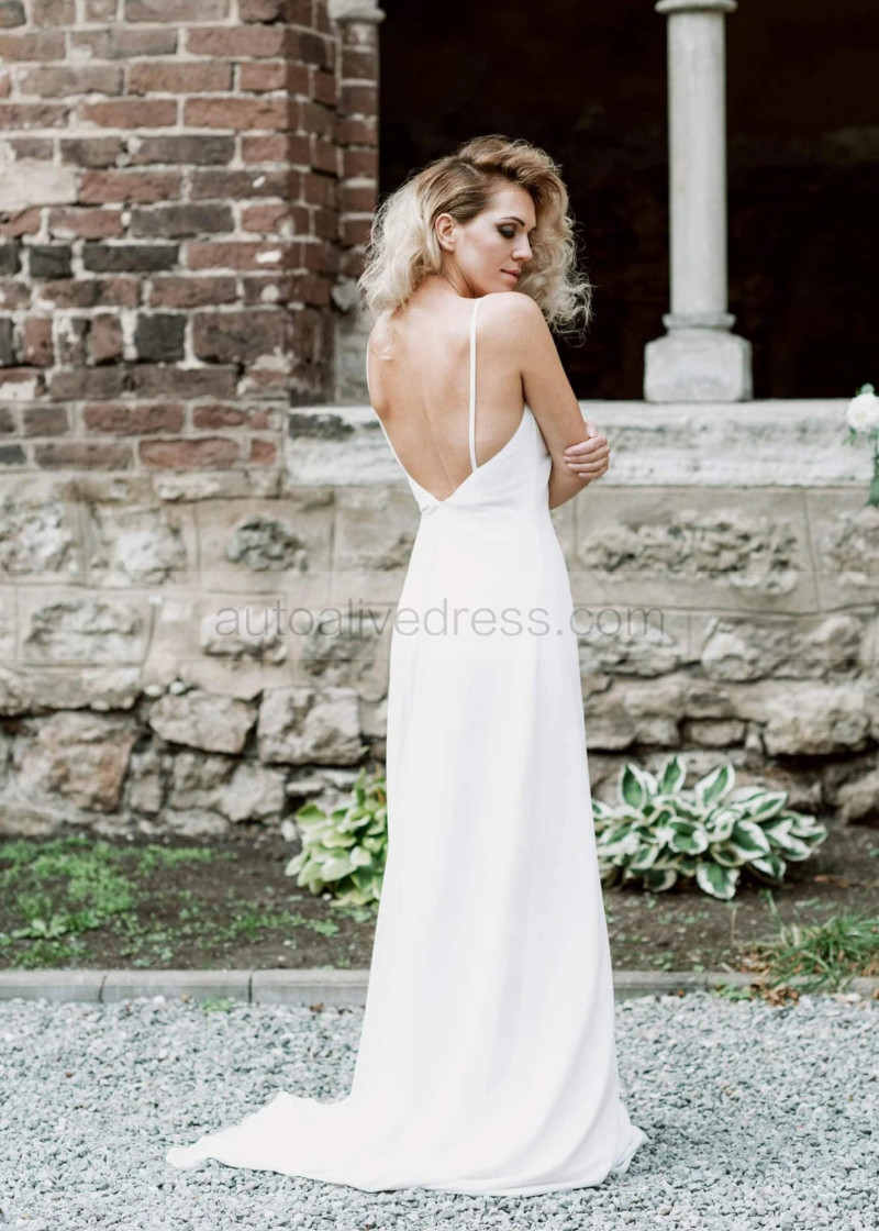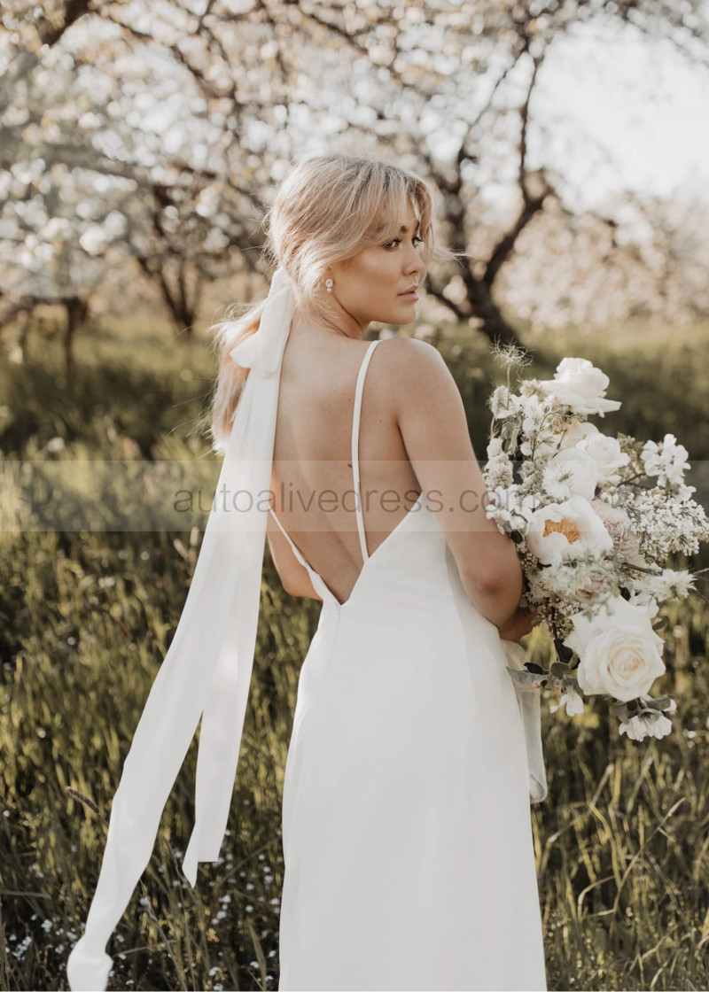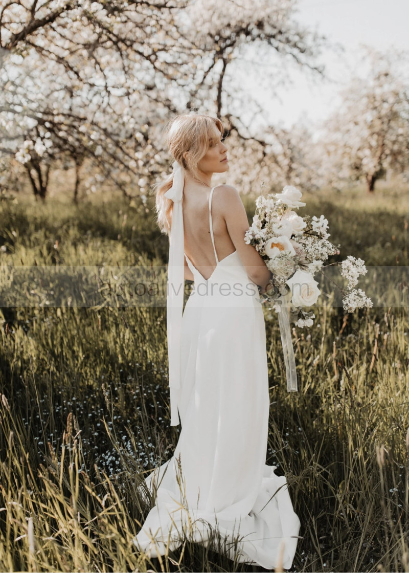 V Neck Ivory Chiffon Simple Boho Wedding Dress