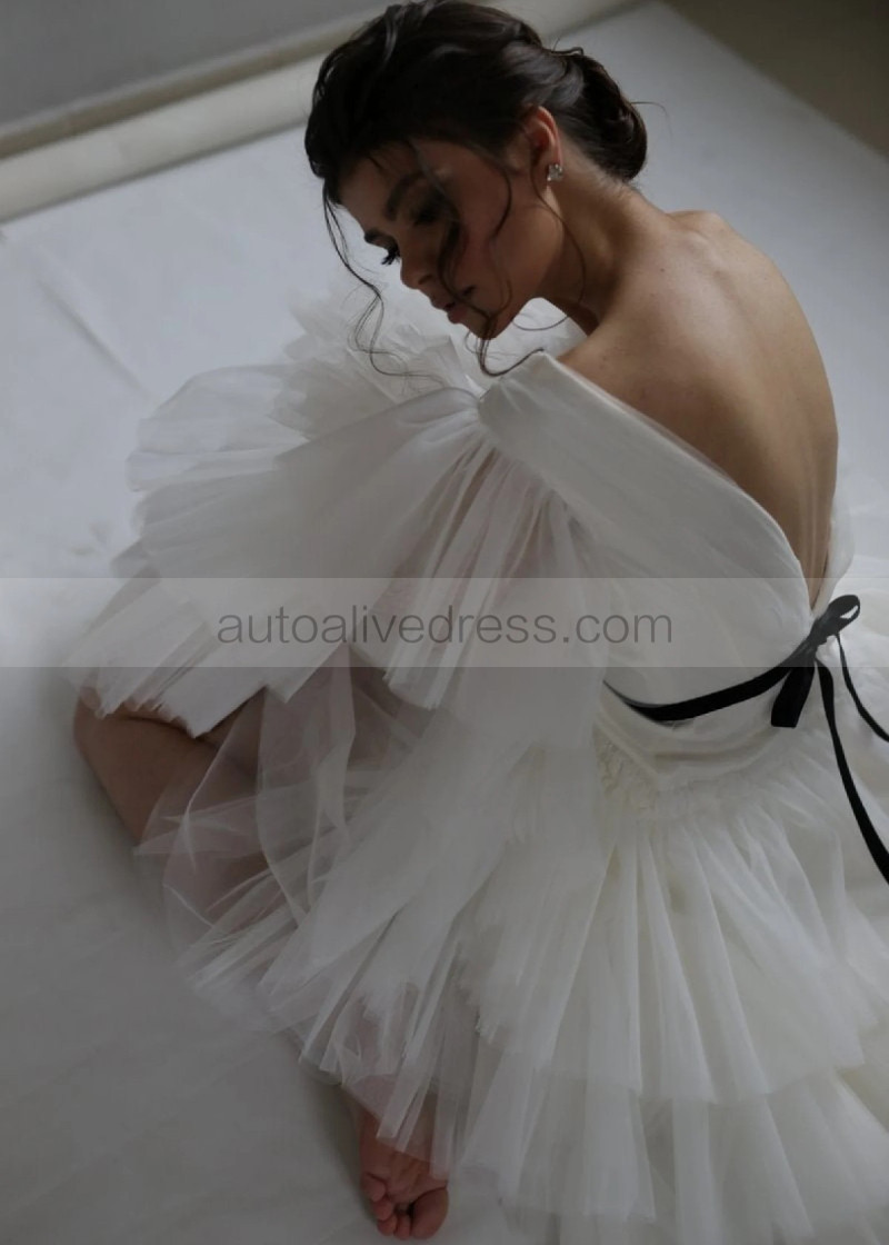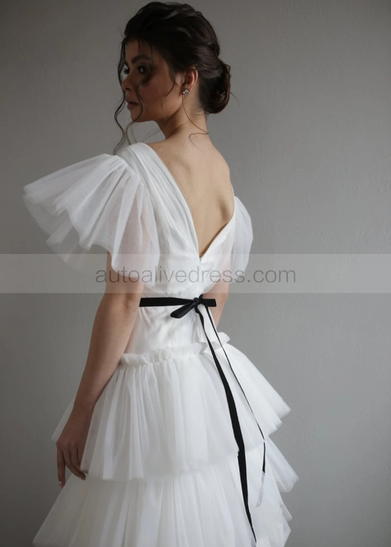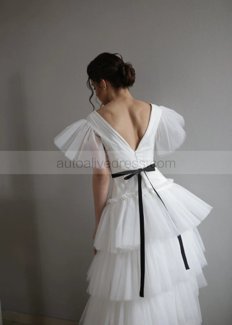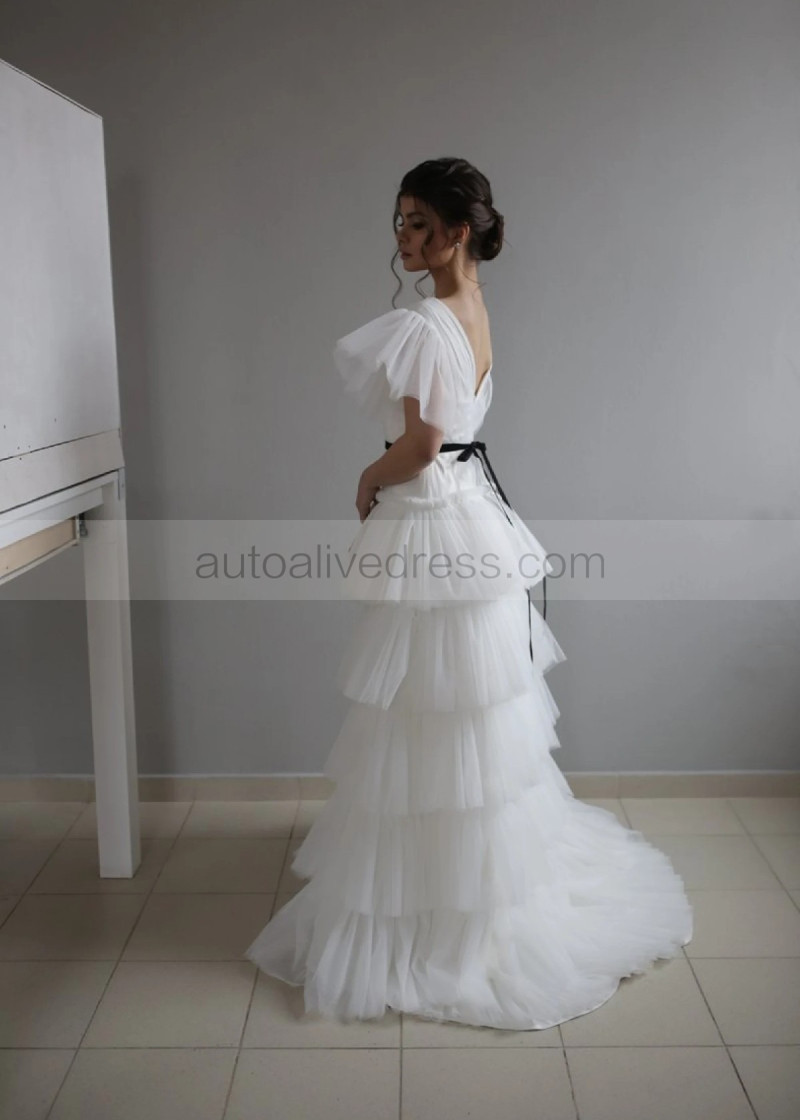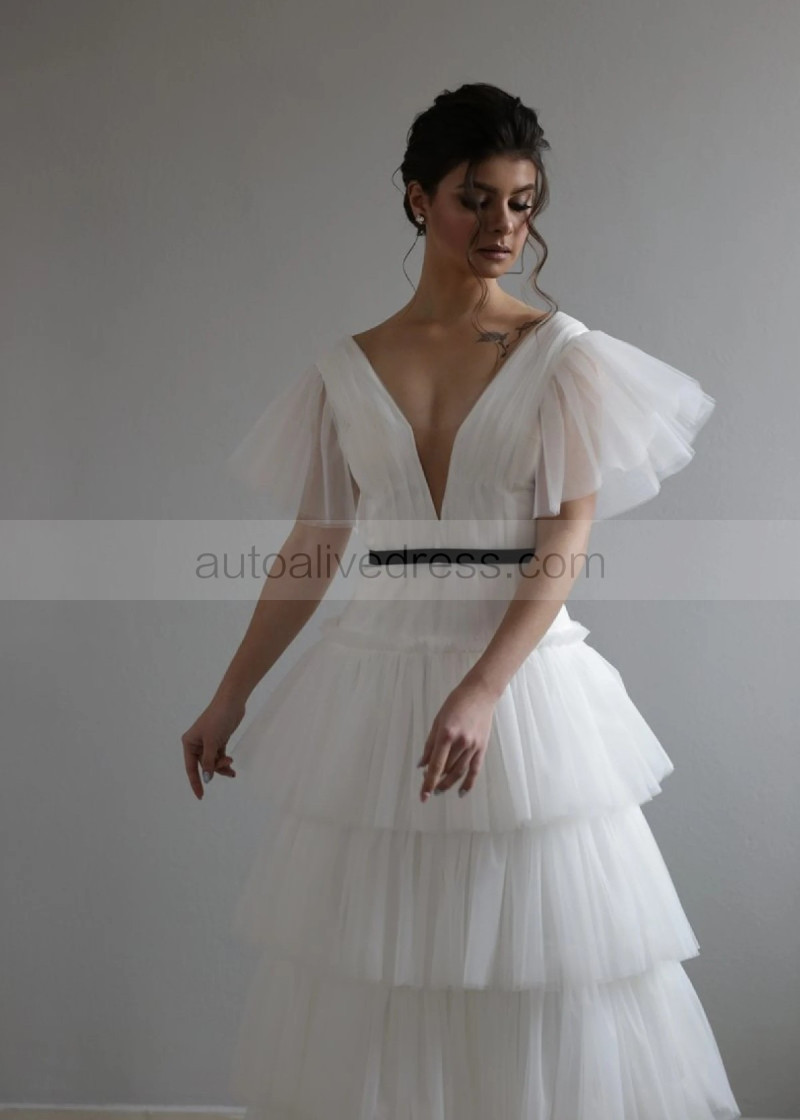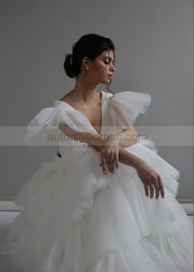 V Neck Ivory Tulle Layered Fabulous Wedding Dress