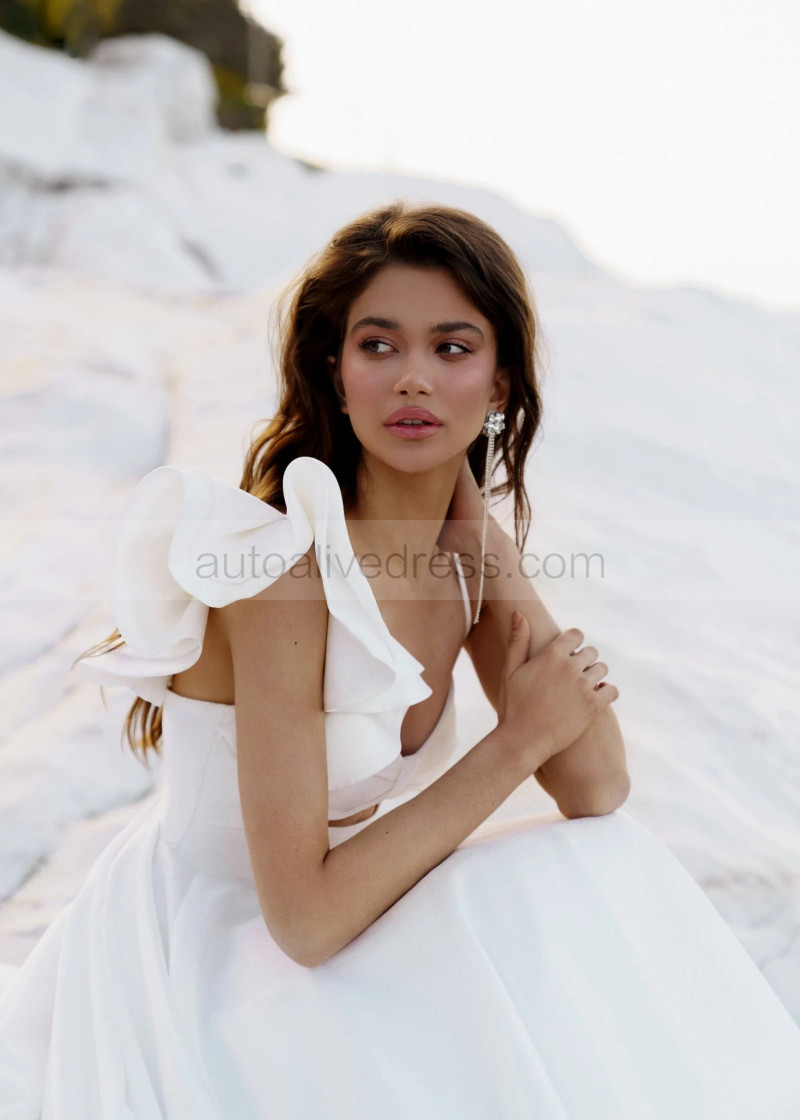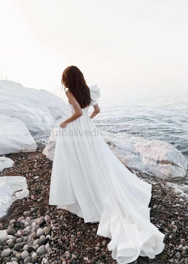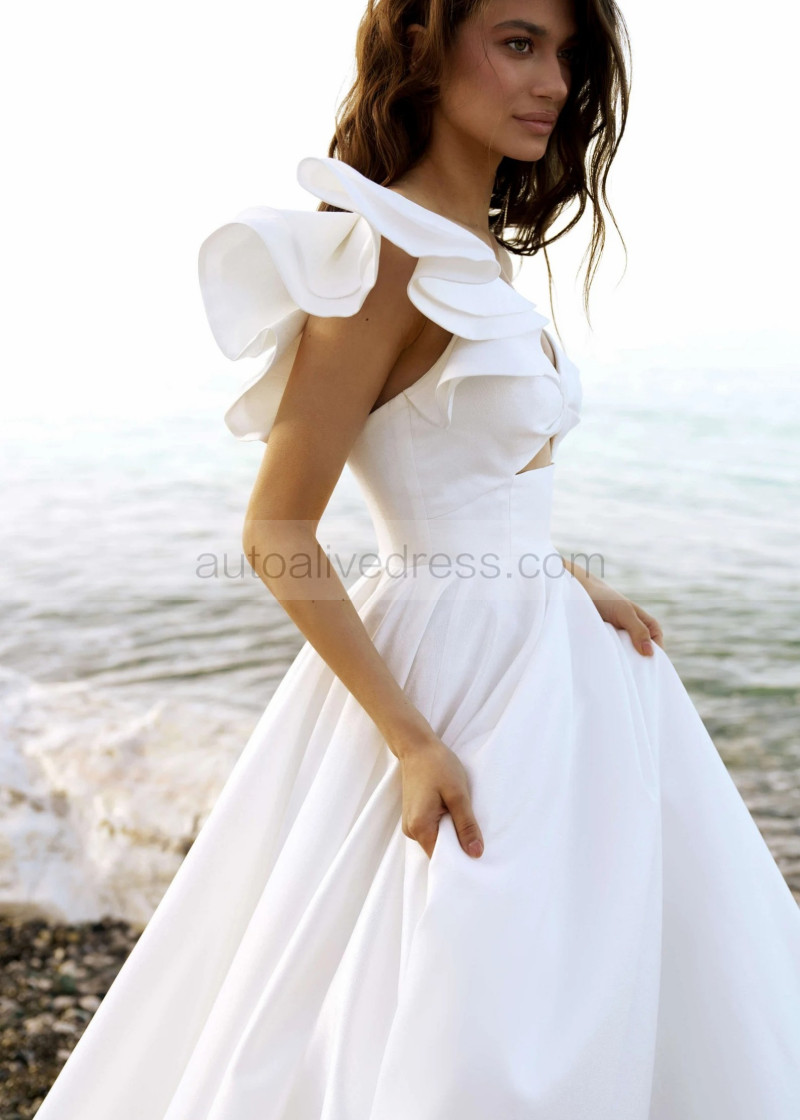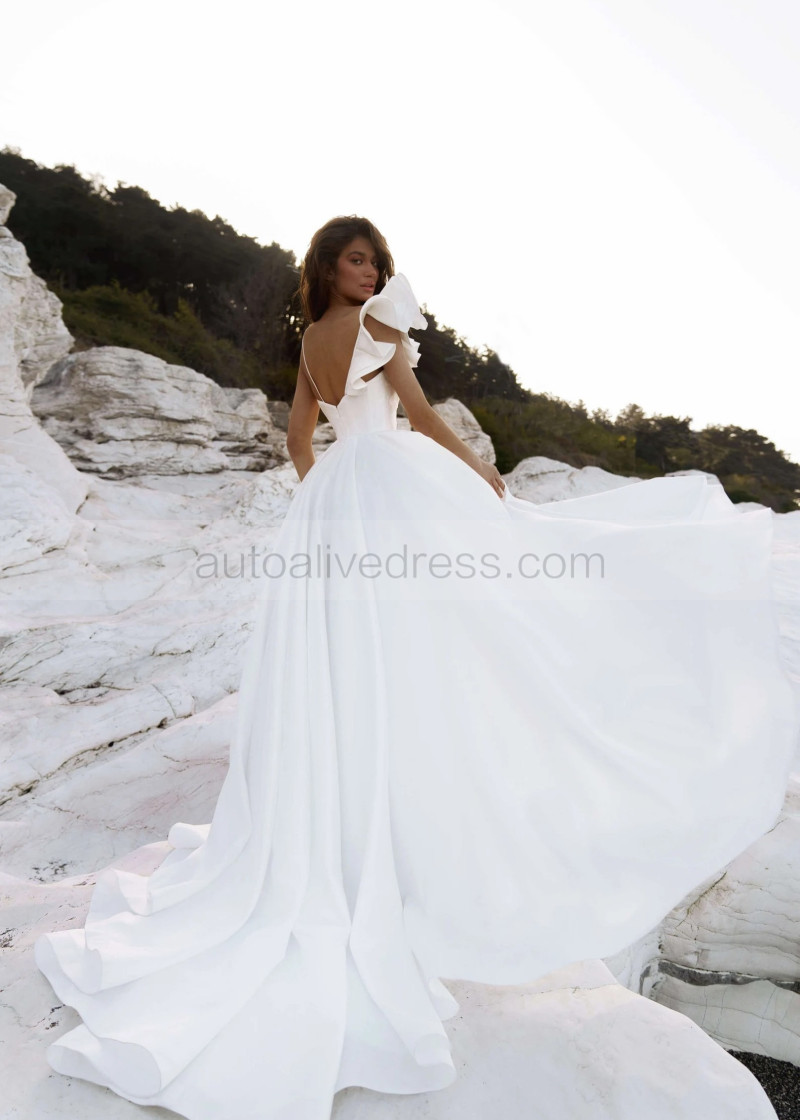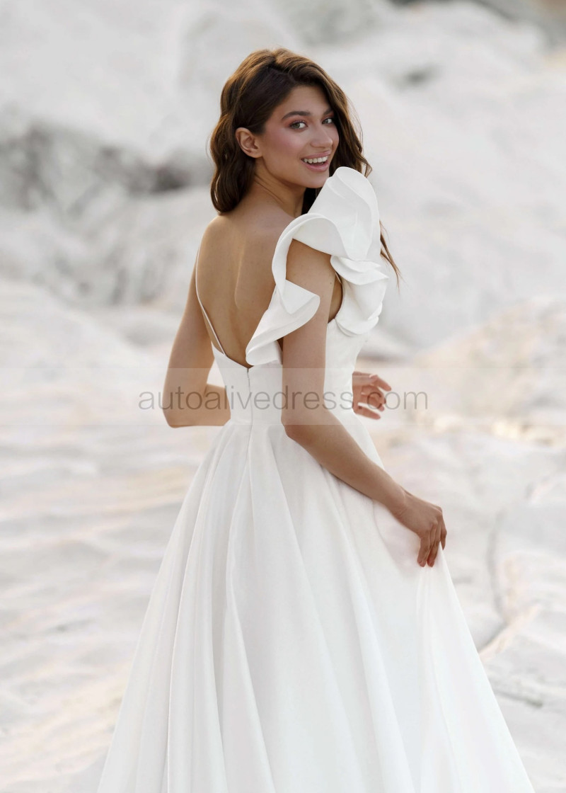 White Satin Open Back Asymmetrical Wedding Dress
