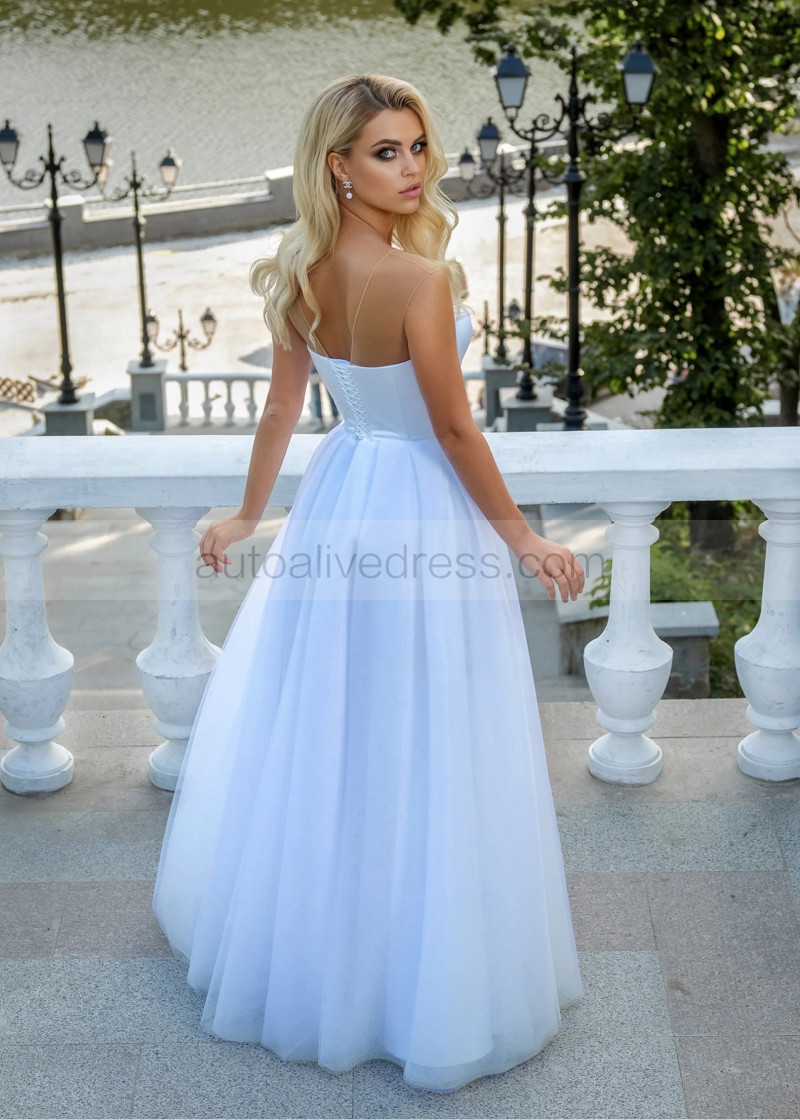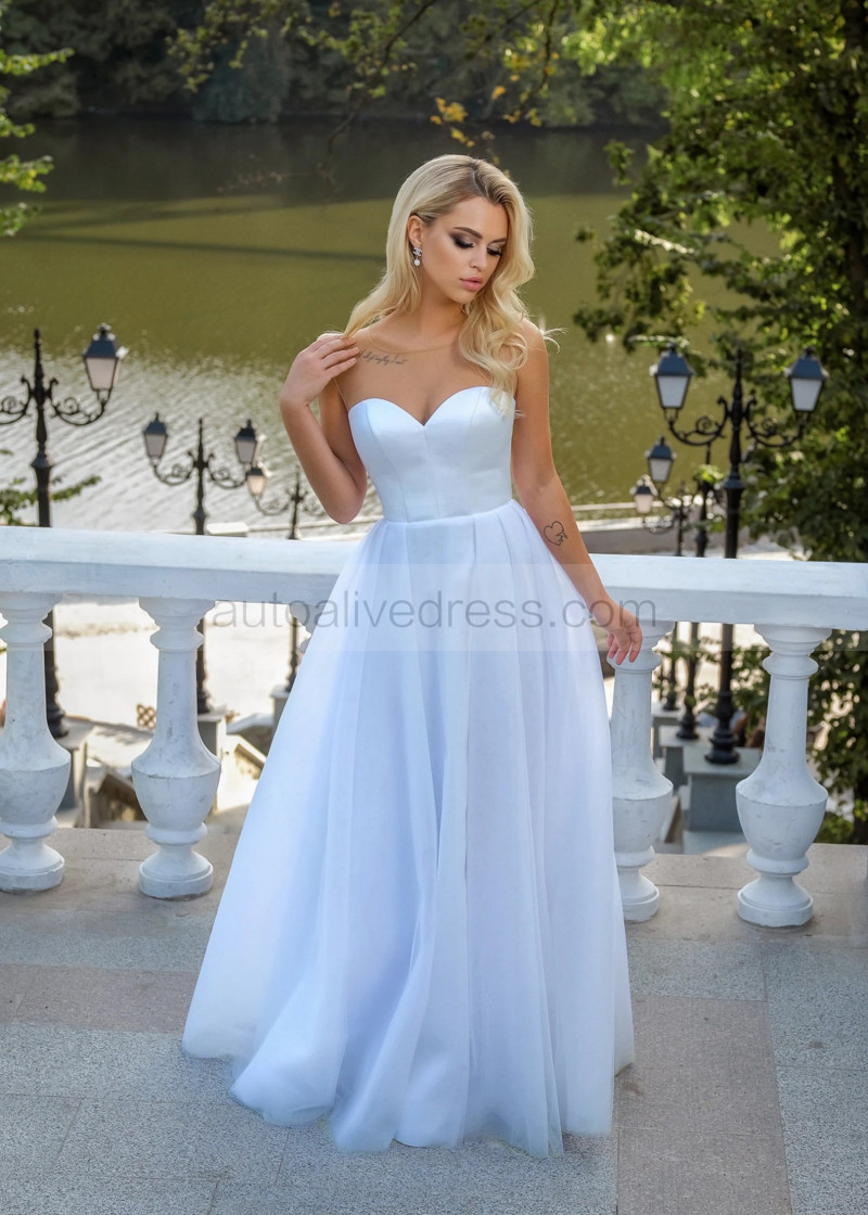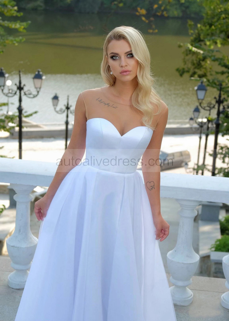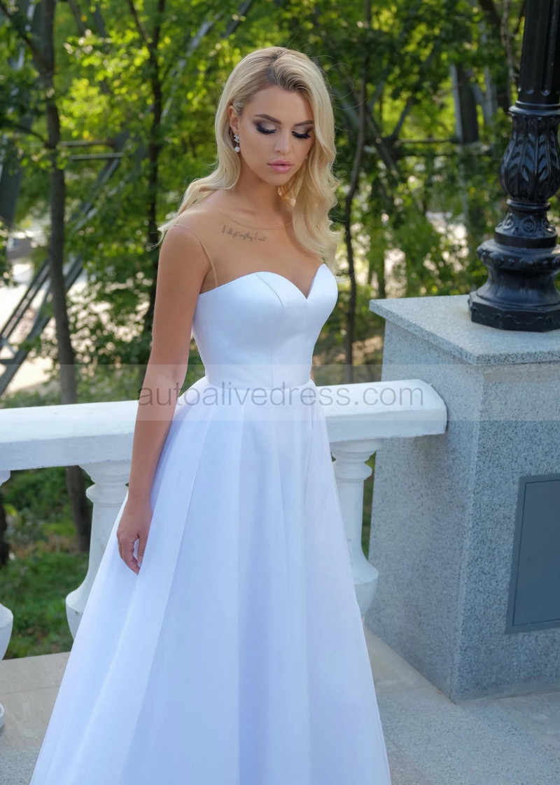 White Satin Tulle Corset Back Minimalist Wedding Dress