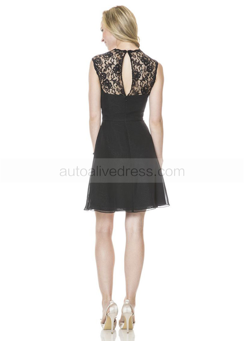 Black Lace Chiffon Keyhole Back Short Bridesmaid Dress