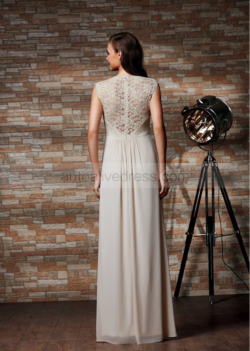 Champagne Lace Chiffon Sheer Back Bridesmaid Dress