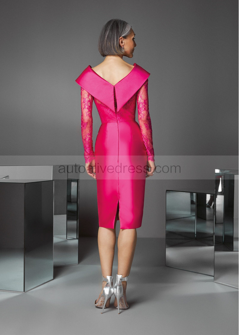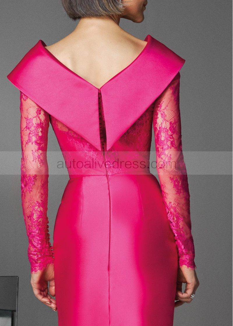 Fuchsia Lace Satin V Back Mother Of The Bride Dress